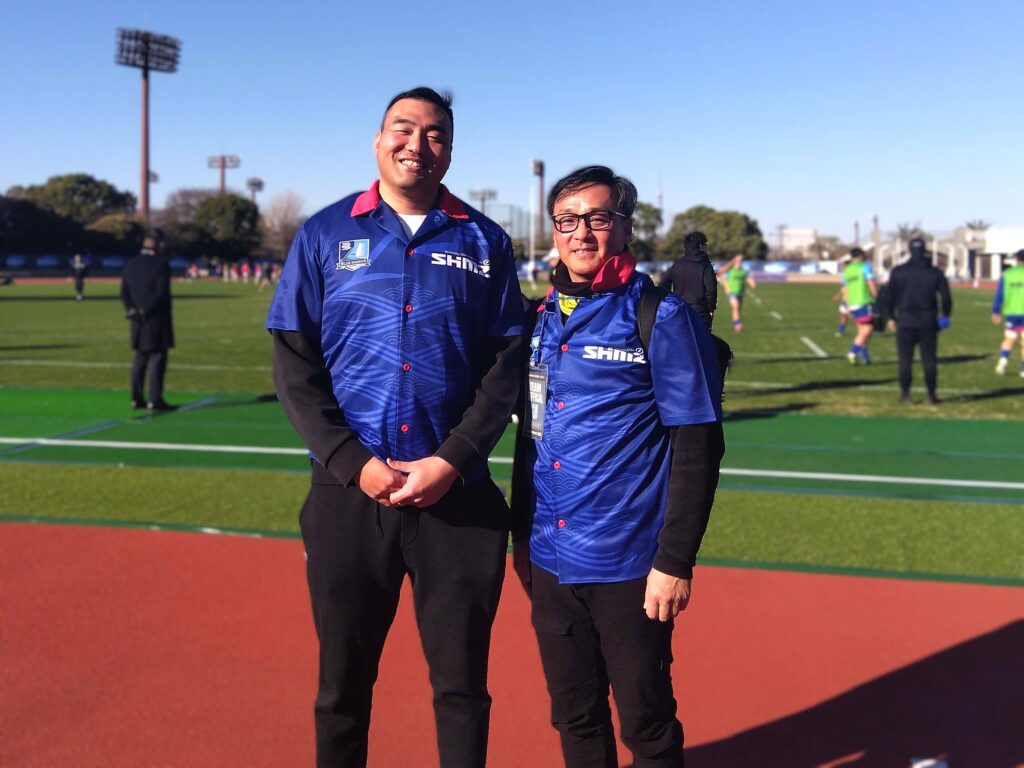 (写真左:高校日本代表候補に選ばれたご経験のある日髙駿選手と弊社社長 帆足📸)